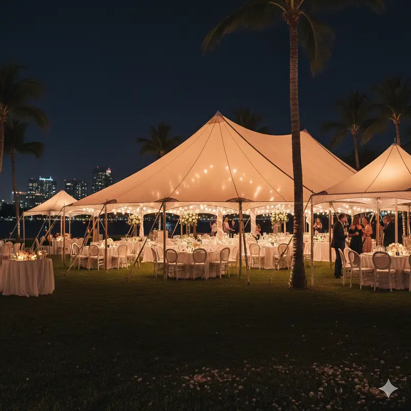 We are South Florida's premier tent rental and event tent specialists, operating out of Delray Beach, and covering parties, weddings, & events in Boca Raton, Lake Worth, West Palm Beach, Wellington, Boynton Beach, and all over Palm Beach County as well as all the breadth of Broward down to Fort Lauderdale.