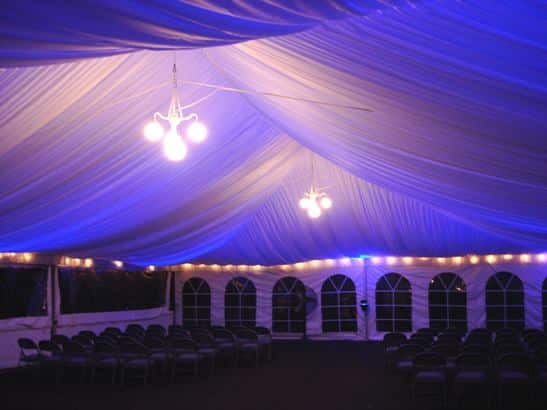 The Party Chandelier is a great accessory for your tent or just to add light to an outdoor environment. It has 4 globes that are 6″ in diameter and hang from a white cord. This Party Chandelier uses a standard 60 watt light bulb and is weather and water resistant. It is not intended to be a permanent light source; they are to be used only temporarily outdoors.