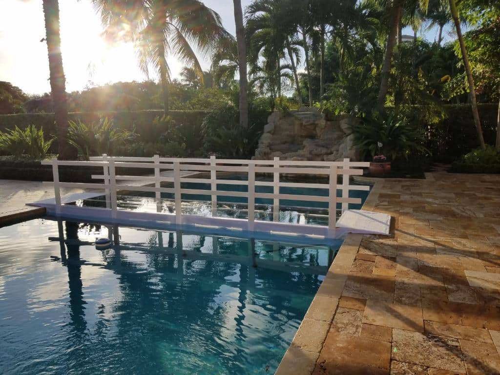 Description: These specialized structures allow you to use your pool area without completely covering it. Bridges provide a passage for guests to cross the pool without getting wet, while stages can be set up for performances or focal points.